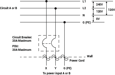 In the following diagrams, the power inputs for ztC Endurance systems are labeled X and Y, as shown in Figure 53 and Figure 54, to eliminate any ambiguities in the nomenclature. For single-phase applications, the X input is connected to the L (Line) hot input, and the Y input is connected to the N (Neutral) input. However, for split-phase or three-phase applications, the X and Y inputs are connected to L1, L2, or L3 (separate lines). Therefore, for split-phase or three-phase applications, both X and Y can be electrically hot with respect to the system base (earth reference ground).