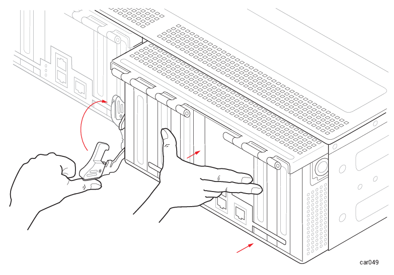 Caution: The release lever must be fully extended as shown in the figure before you perform step 4.