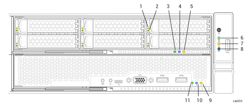 Figure 30: Front LEDs: Storage Module, Control-panel Ear, and Compute Module